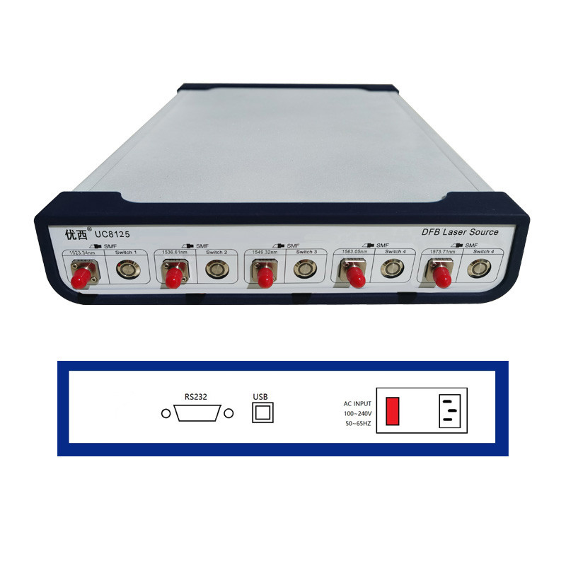 Rendimiento superior de varios canales de la oferta de la fuente de laser de U8125 DFB para la prueba de los componentes de CWDM, de DWDM, de los componentes del AWG y del PLC, de los amplificadores ópticos, y de otros usos de fines generales de la prueba y de la medida de la fibra óptica. Se diseña específicamente para CWDM en grandes cantidades, los acopladores y cadena de producción del PLC uso.